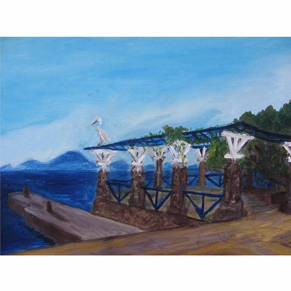 Pintura a óleo sobre tela retratando o caramanchão dos tamoios, uma das paisagens típicas da bucólica ilha de Paquetá, no Rio de Janeiro. Assinado frente e verso, com moldura de madeira, pronto para expor.