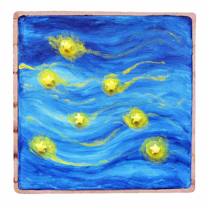 Quadro original em técnica mista feito em parceria, com pintura a óleo sobre tela de Leo DuLac e origamis de estrelas de Amanda. Assinado no verso pelos artistas.