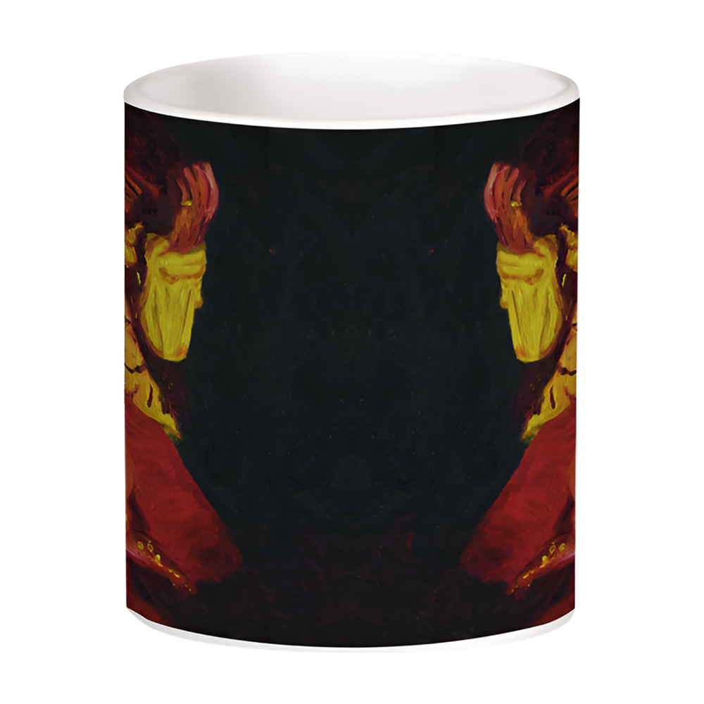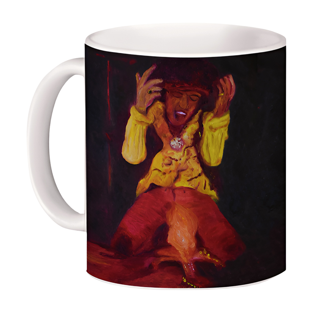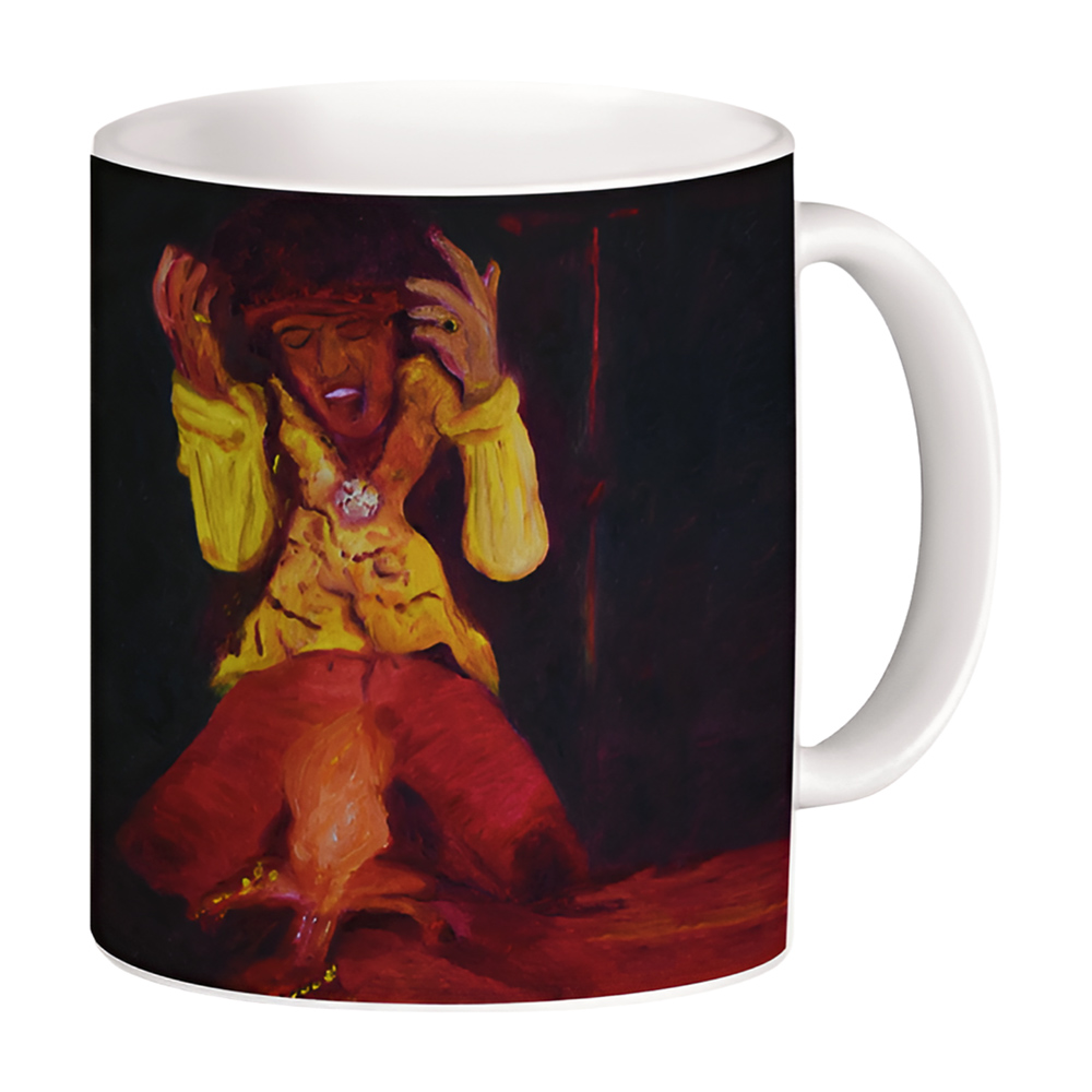 Um retrato em brasa, entre êxtase e rito: o corpo se contorce, a chama ascende como um solo elevado ao sagrado profano. Em óleo sobre tela, pincelada espessa e cromas quentes (amarelos e carmins) instauram a atmosfera de palco — memória da performance incendiária que cristalizou a canção “Wild Thing” como mito.
